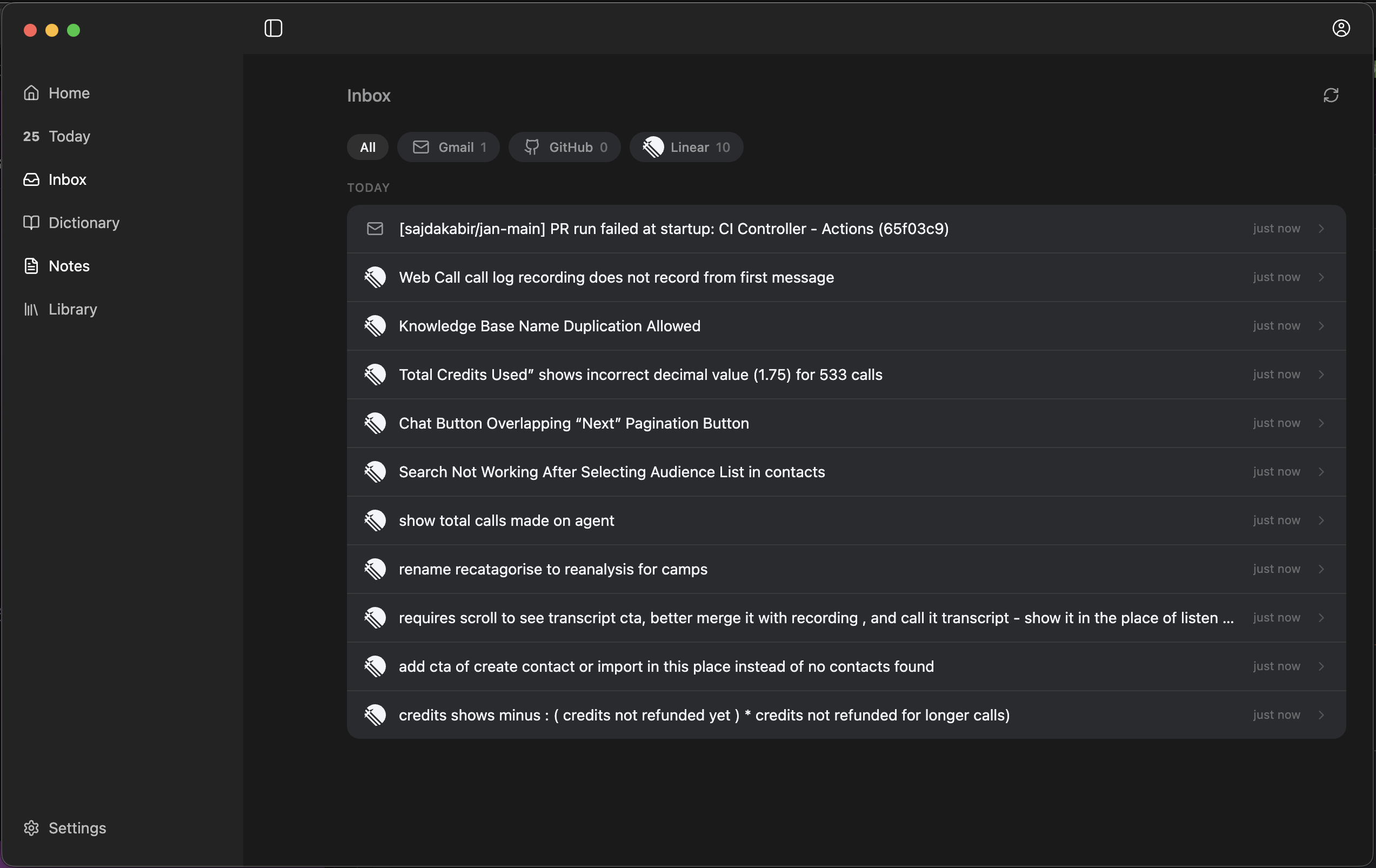 All your notifications from Gmail, GitHub, Linear, and more—in one place. No more switching between tabs.